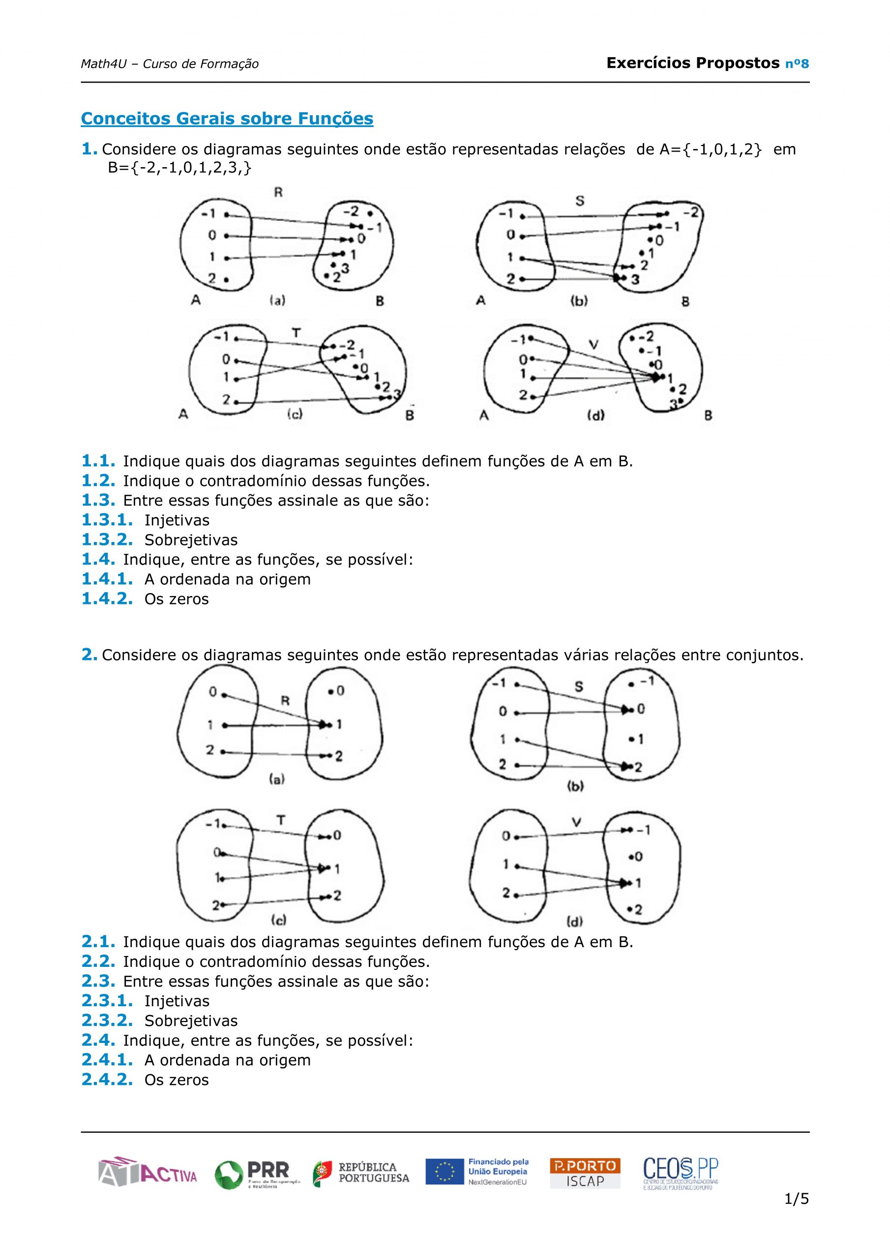 Conceitos Gerais sobre Funções: Domínio, Contradomínio, Zeros, Paridade, Monotonia e extremos, Sinal,… – exercícios