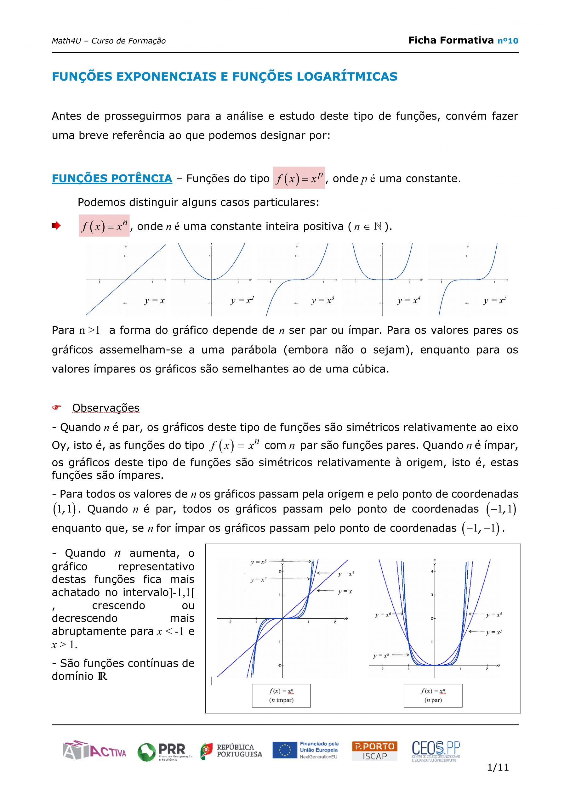 Ficha formativa – preparada para trabalho autónomo – sobre Funções Exponenciais e Logarítmicas, com enquadramento/resumo teórico, exemplos, e exercícios de aplicação.