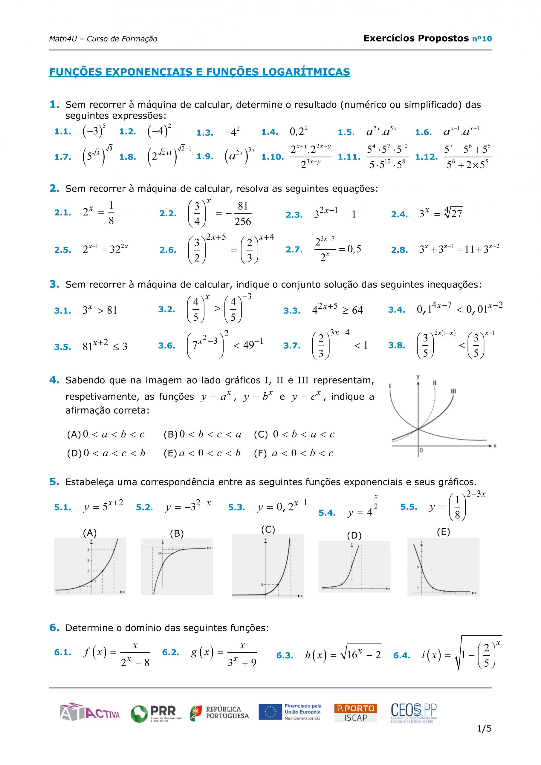 Funções Exponenciais e Logarítmicas – exercícios