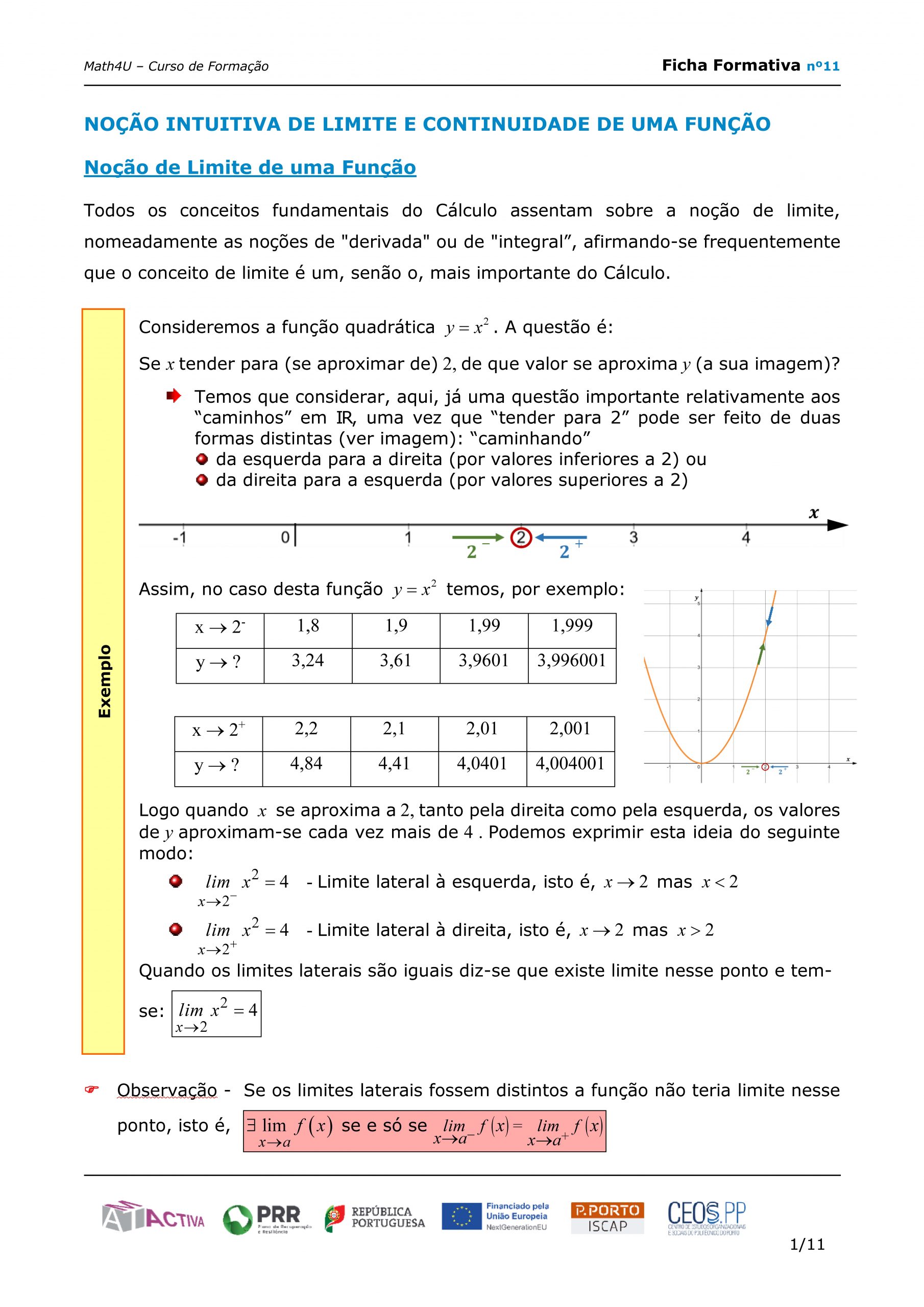 Noção de Limite de uma Função / Continuidade de Funções / Breve introdução a Assíntotas