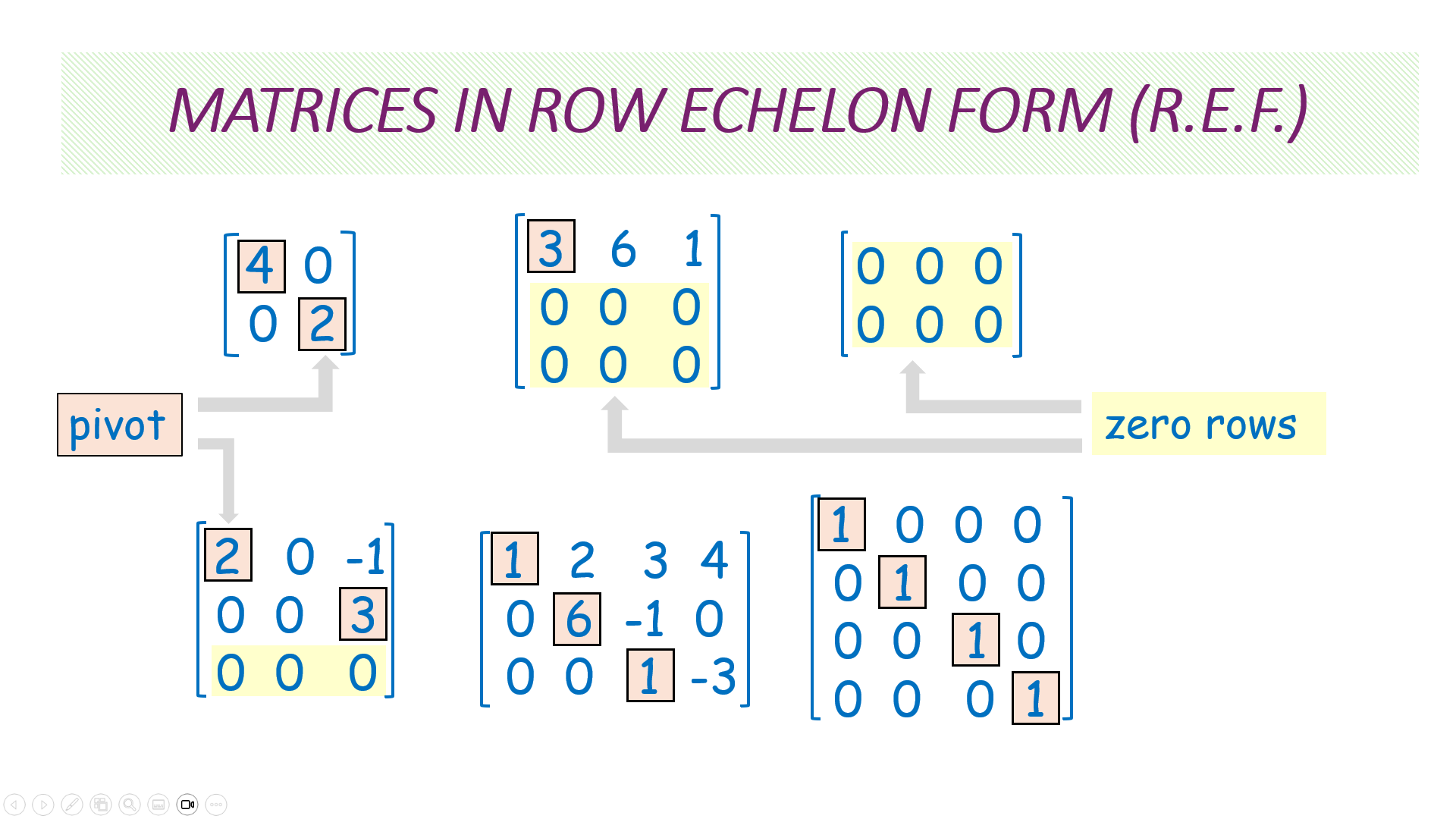 Matrices in row echelon form and in reduced row echelon form are defined; with examples and a quick test (editable pptx)