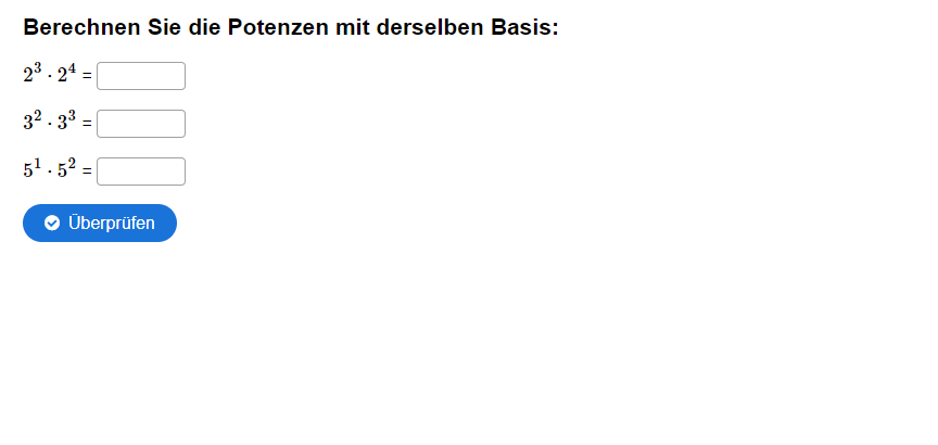 Aufgabe: Berechnen Sie die Potenzen mit der gleichen Basis