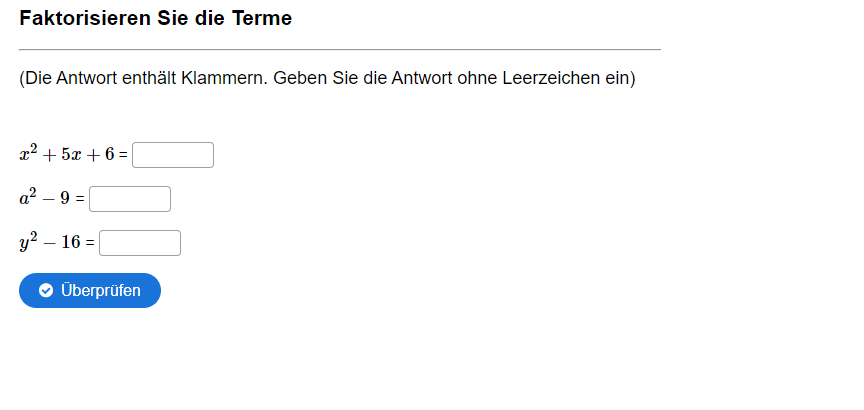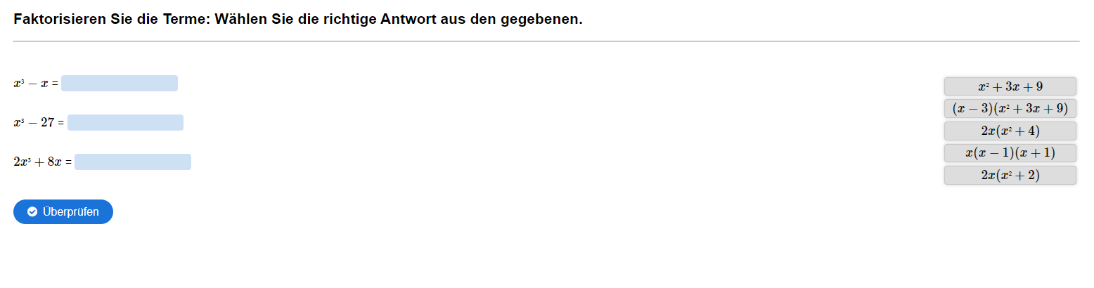 Aufgabe: Faktorisieren Sie die Terme