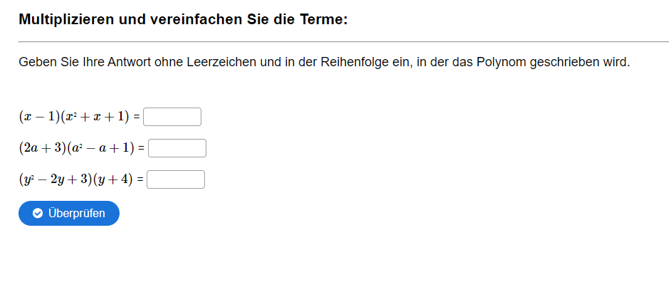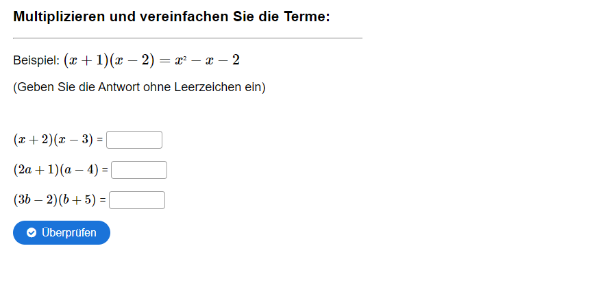 Aufgabe: Multiplizieren und vereinfachen Sie die Terme