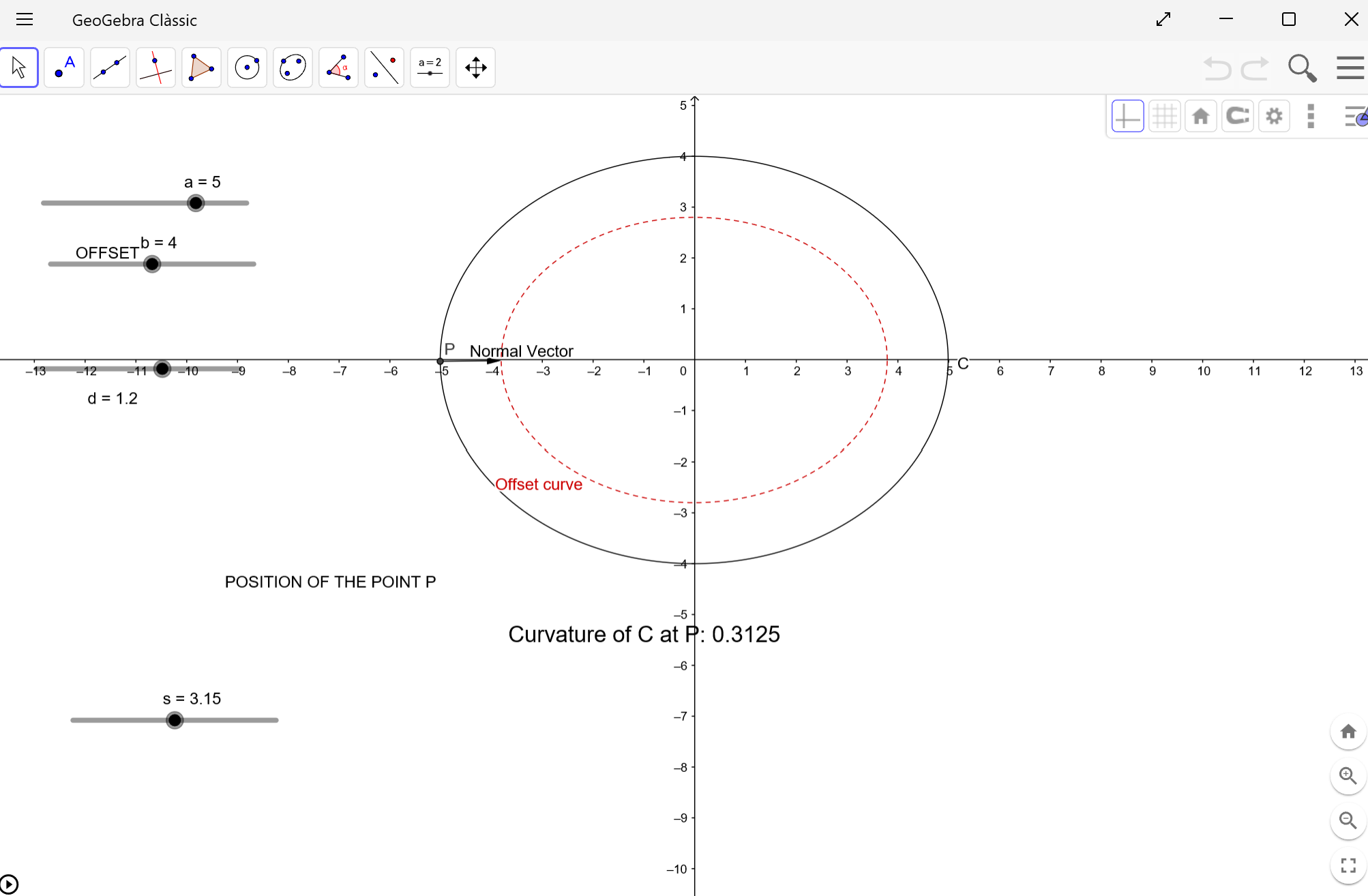Ellipse, Normal vector, Offset curve, Curvature, GeoGebra
