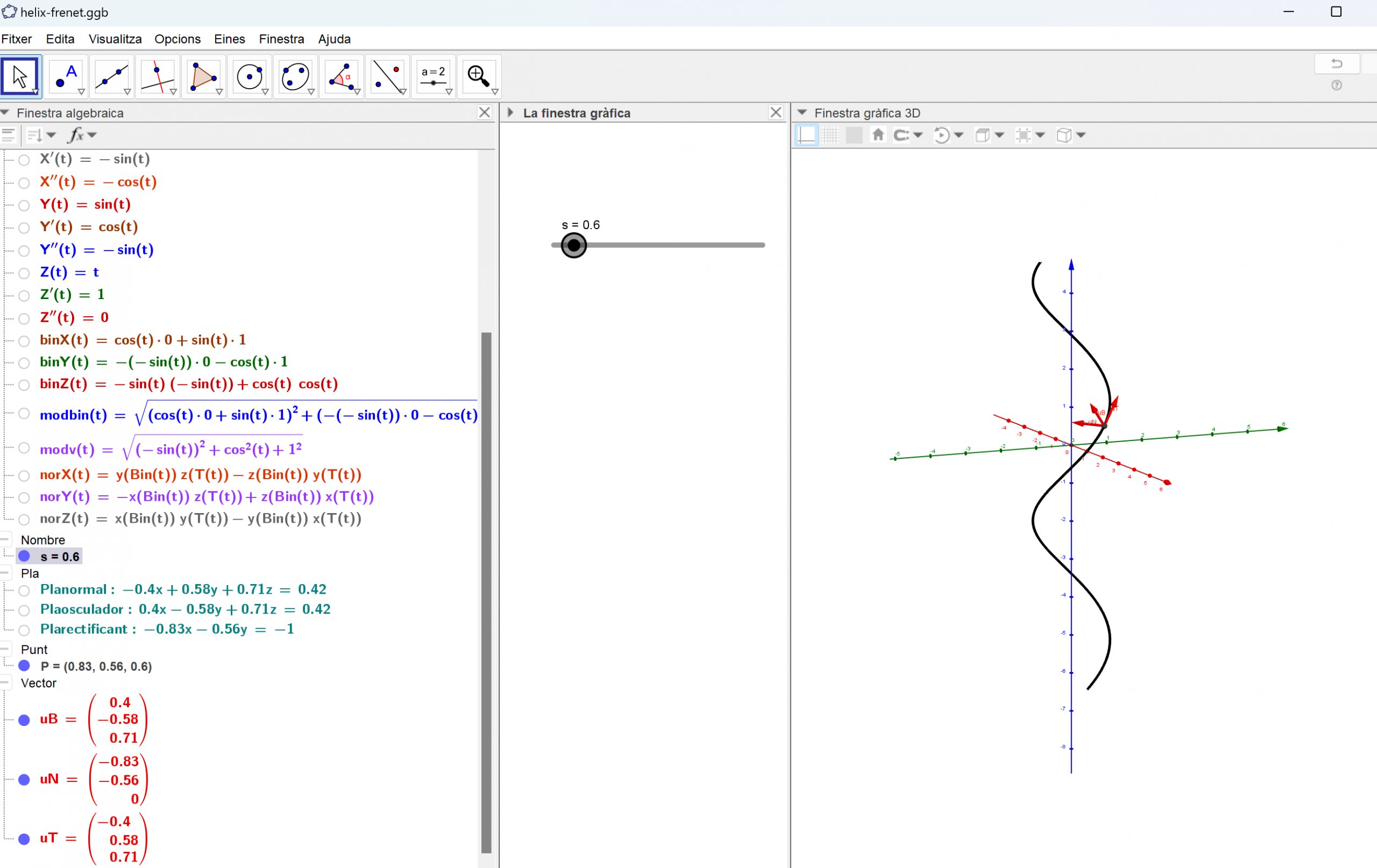 Differential Geometry, 3D Curves, Frenet trihedron, GeoGebra