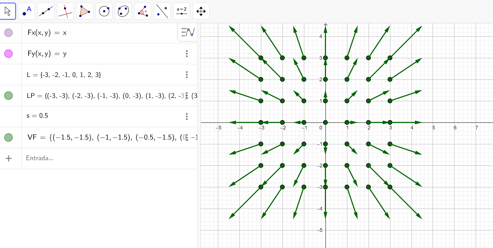 A GeoGebra applet to visualize two-dimensional vector fields. Geogebra is required but the educational resource is also available online at https://www.geogebra.org/classic/up2e8tcv