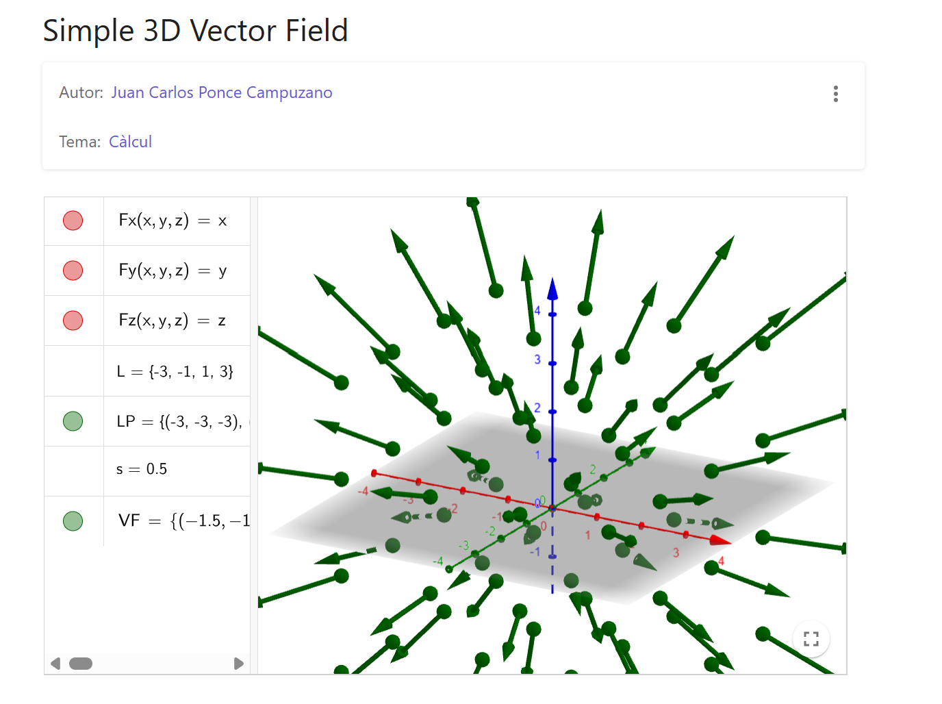 A Geogebra applet to visualize three-dimensional vector fields. GeoGebra is required but the educational resource is also available online at https://www.geogebra.org/m/rqxxfvb2