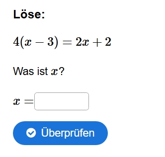 Bei dieser Aufgabe geht es darum, lineare Gleichungen zu lösen, die Klammern enthalten und eine Verteilung erfordern. Hinweis: Erfordert die Verwendung eines speziellen Plug-ins/Software.