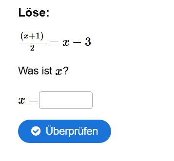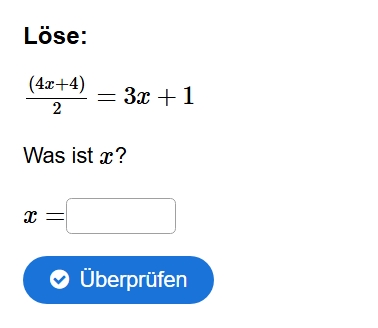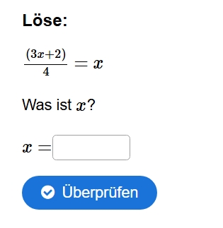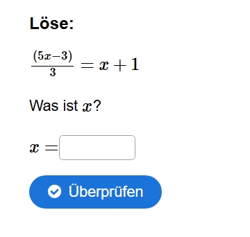 Übung zum Lösen linearer Gleichungen unter Verwendung rationaler Ausdrücke (Brüche). Hinweis: Erfordert die Verwendung eines speziellen Plug-ins/Software.