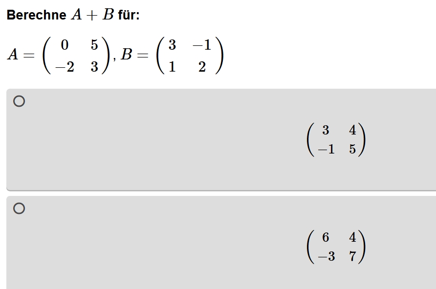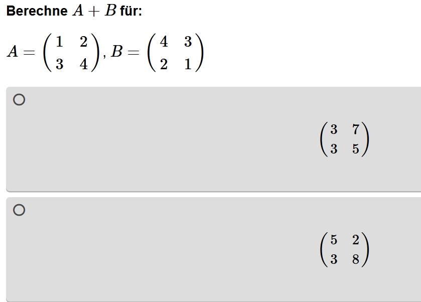 Addition zweier gleichdimensionaler Matrizen. Hinweis: Erfordert die Verwendung eines speziellen Plug-ins/Software.