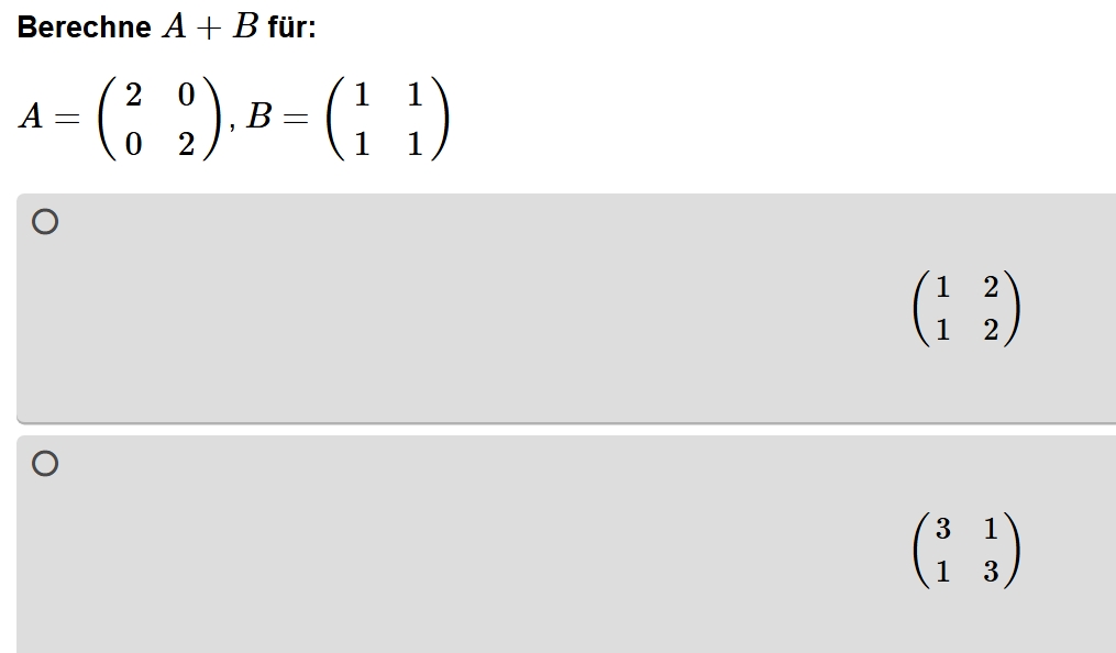 Addition zweier gleichdimensionaler Matrizen. Hinweis: Erfordert die Verwendung eines speziellen Plug-ins/Software.