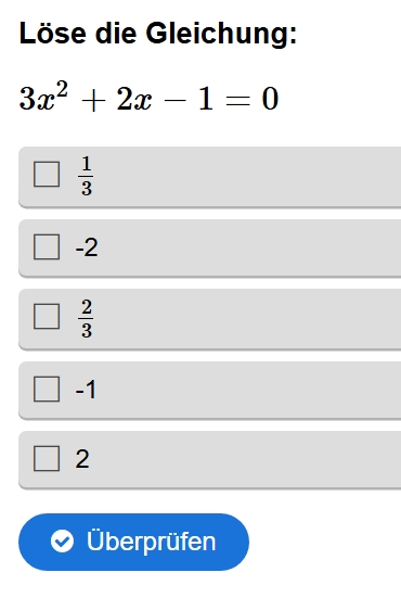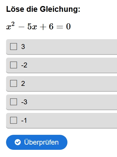 Lösung einer quadratischen Gleichung (Mitternachtsformel). Beispiel 3