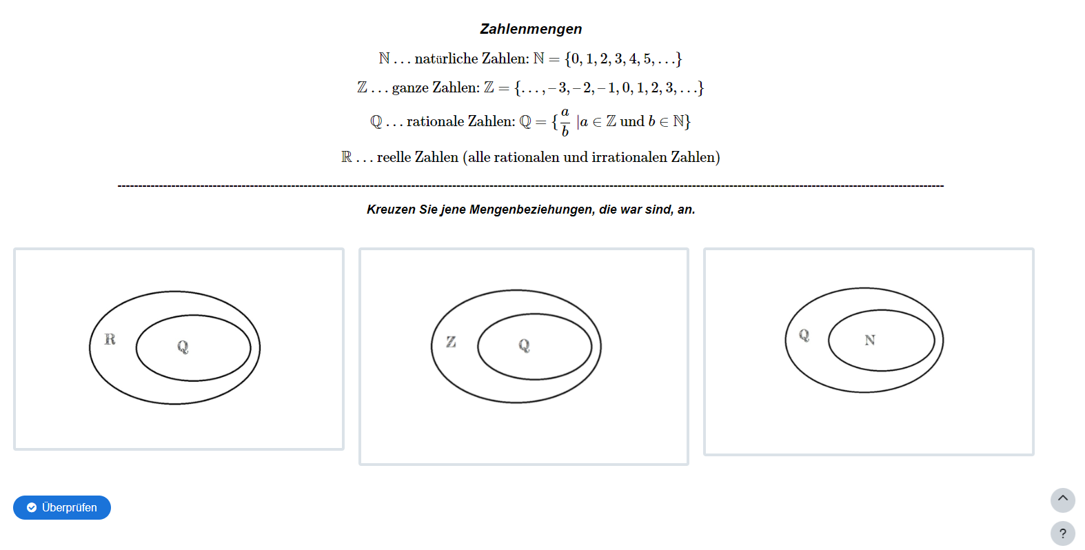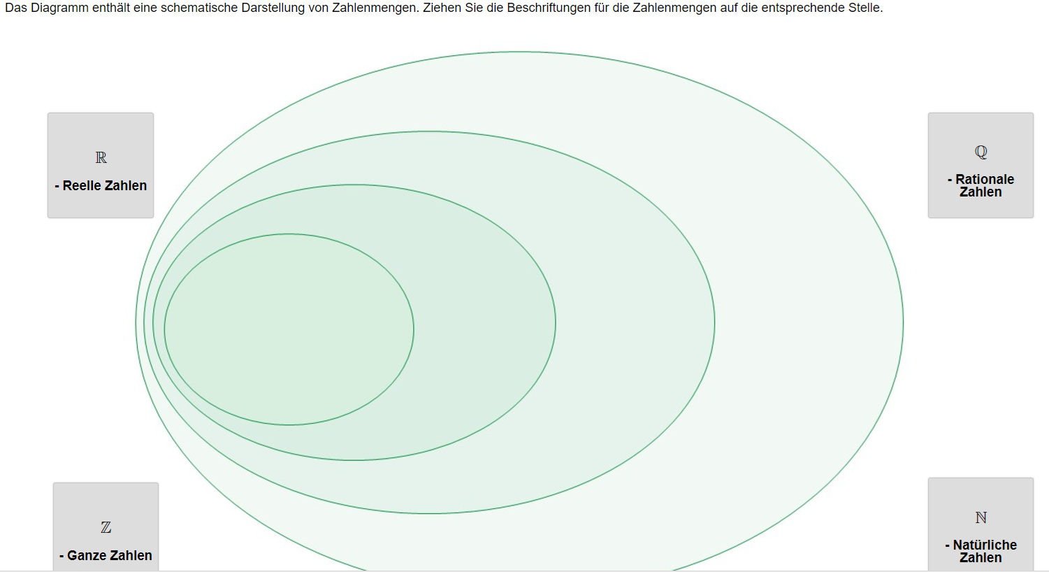 Aufgabe: Wähle die richtige Darstellung der Beziehung von Zahlenmengen.