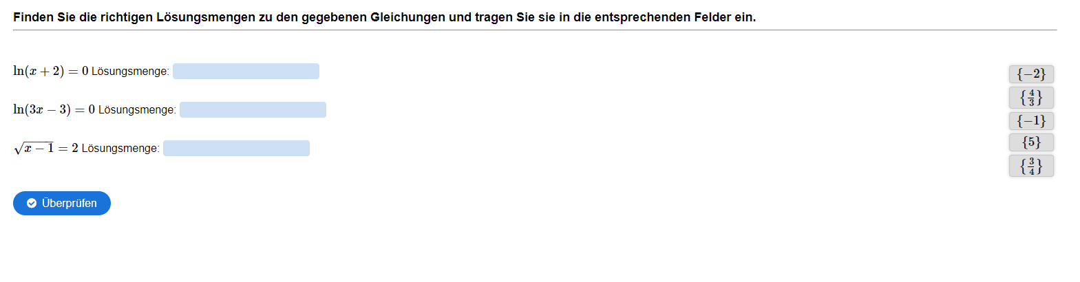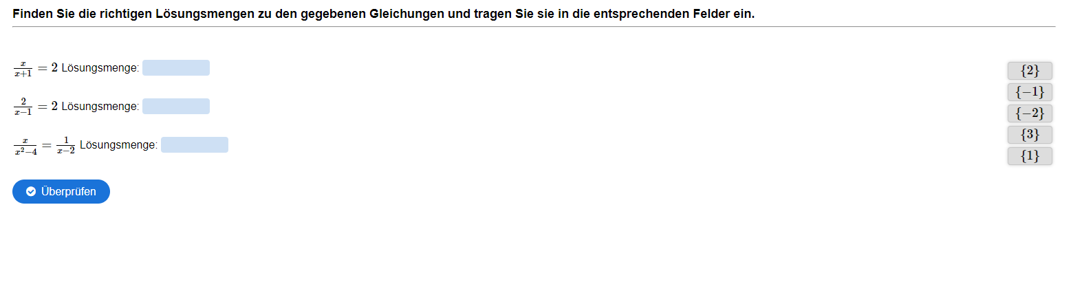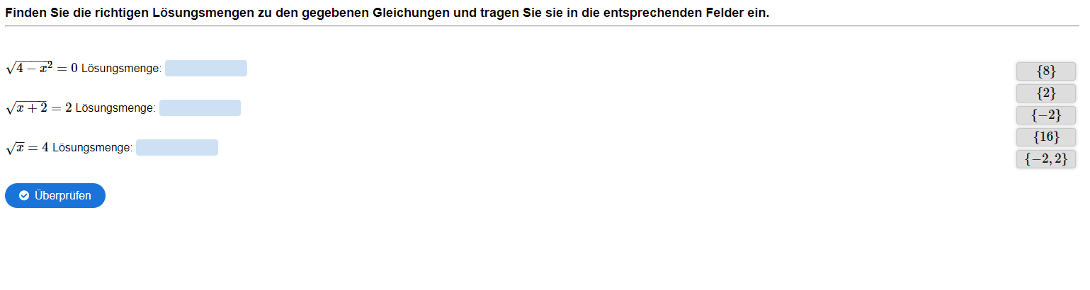Aufgabe: Finden Sie die richtigen Lösungsmengen für die gegebenen Gleichungen