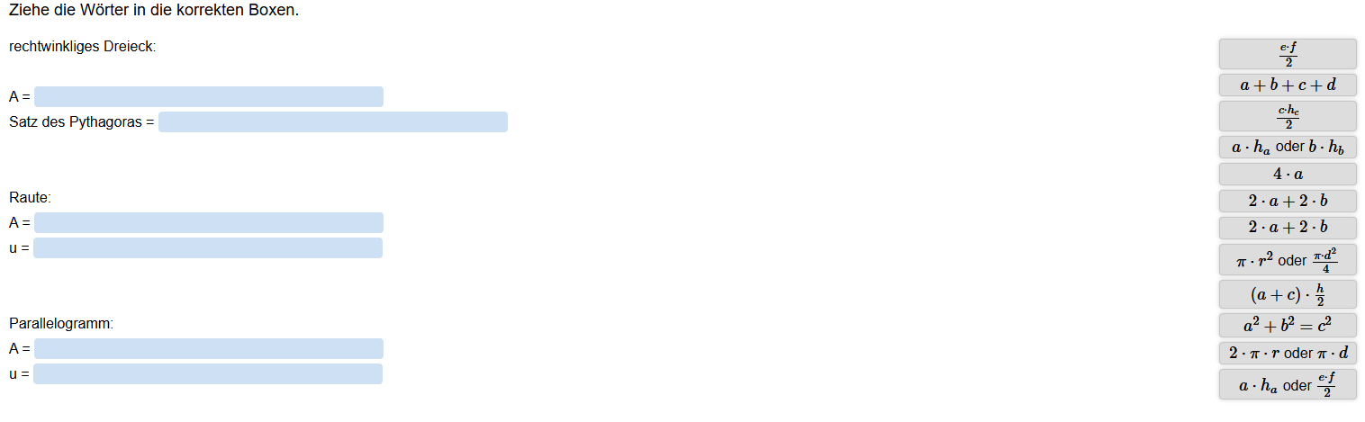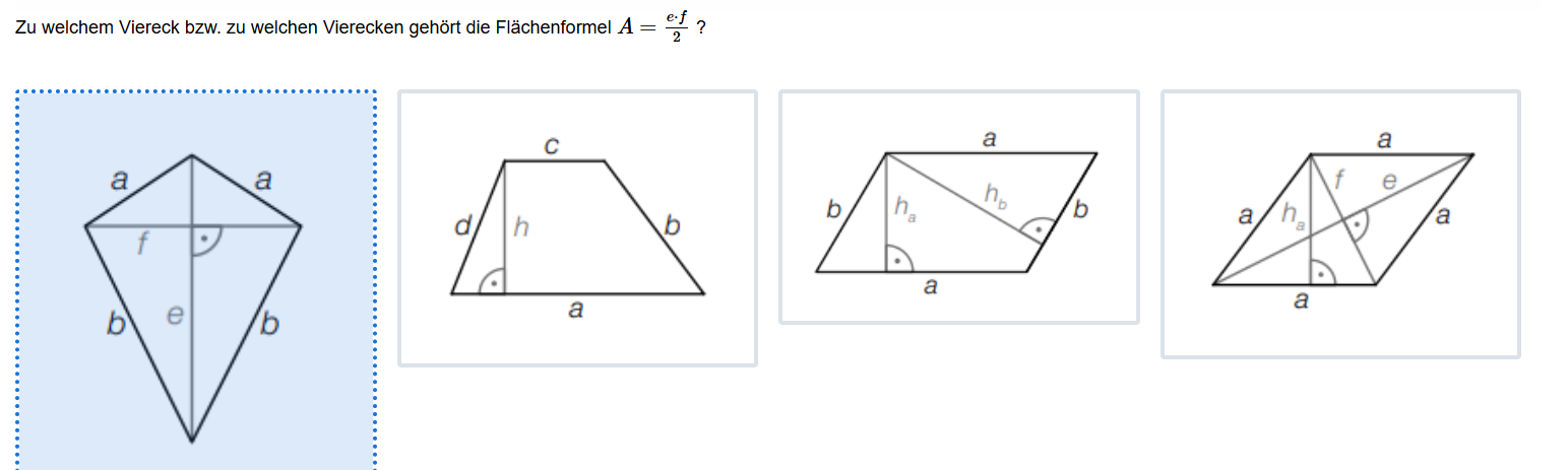 Aufgabenstellung: Zu einer gegebenen Flächenformel sollen die entsprechenden Figuren ausgewählt werden.