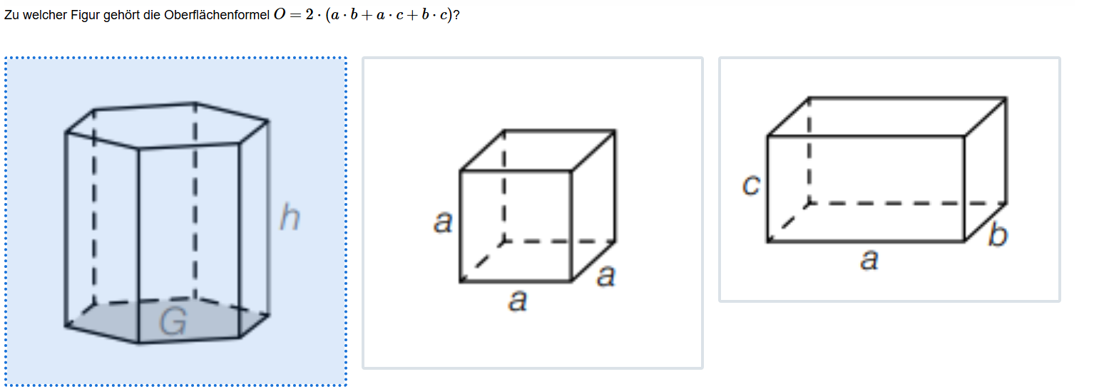 Aufgabenstellung: Zu einer gegebenen Oberflächenformel soll der entsprechende Körper gewählt werden.