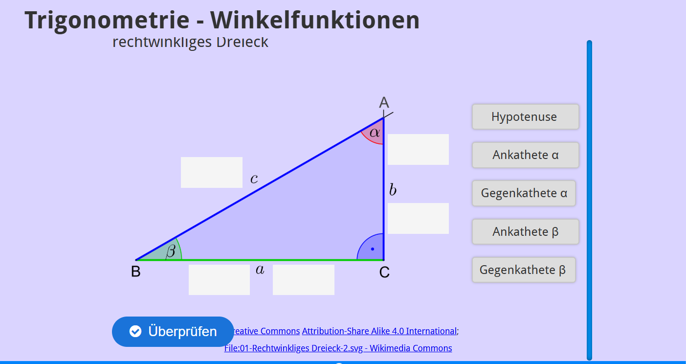 Aufgabenstellung: Zu einem rechtwinkligen Dreieck müssen Begriffe zugeordnet werden