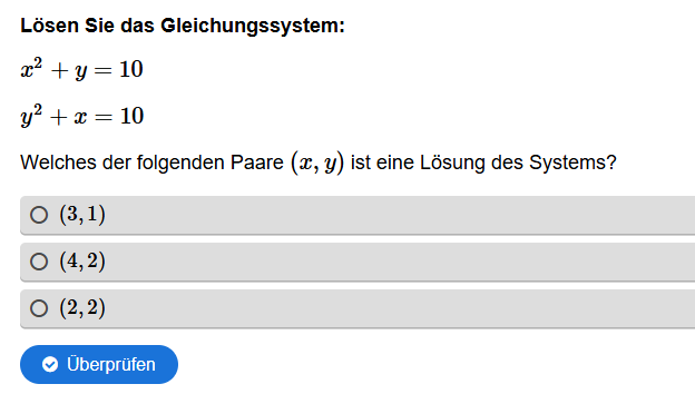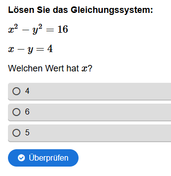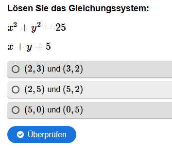 Aufgabenstellung: Gegeben sind zwei quadratische Gleichungen, die richtige Lösung muss gefunden werden.