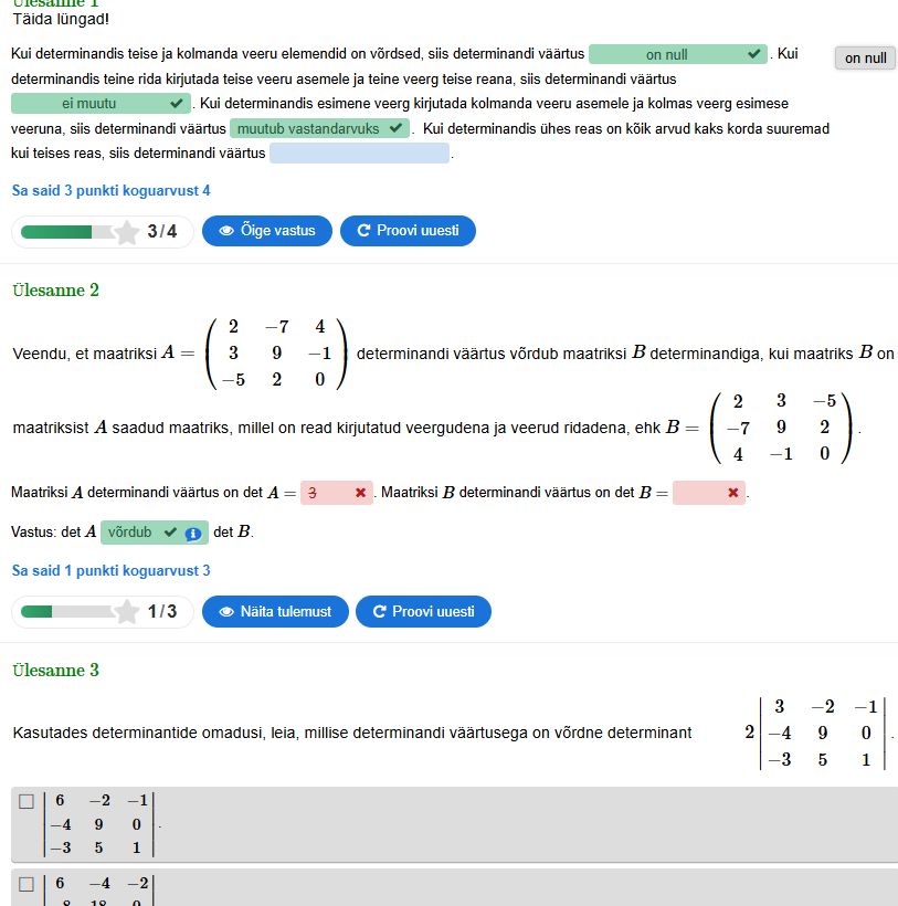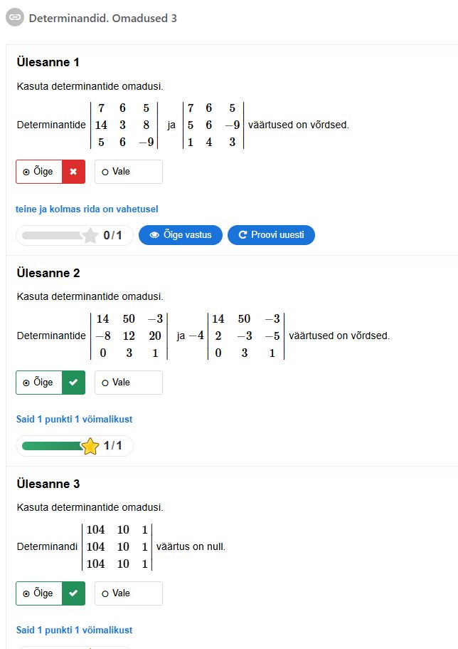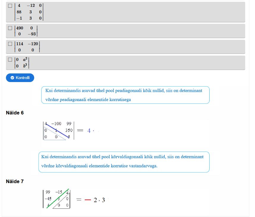 Interaktiivsed ülesanded determinantide omaduste kohta