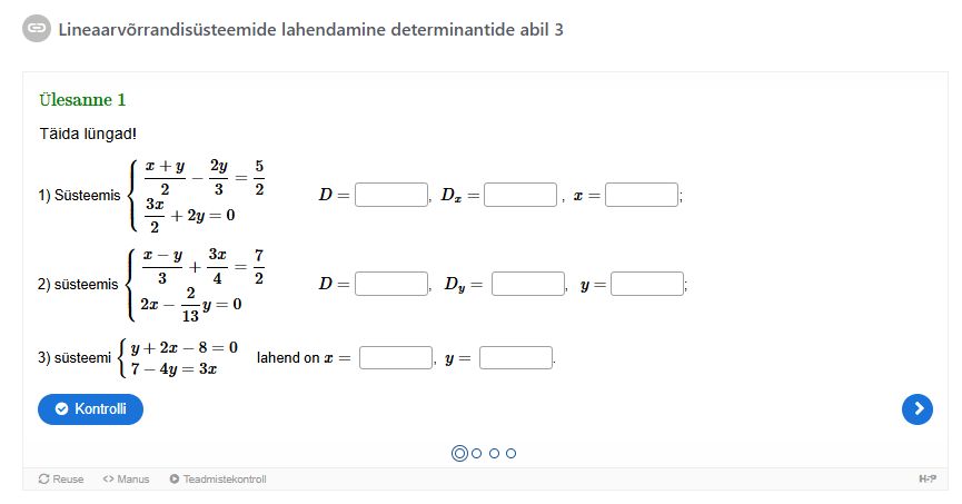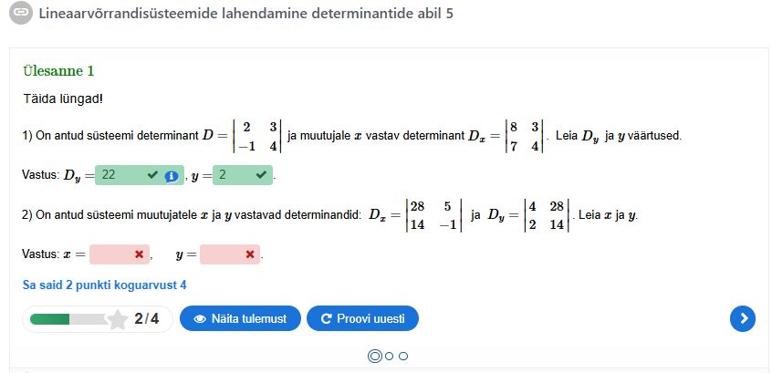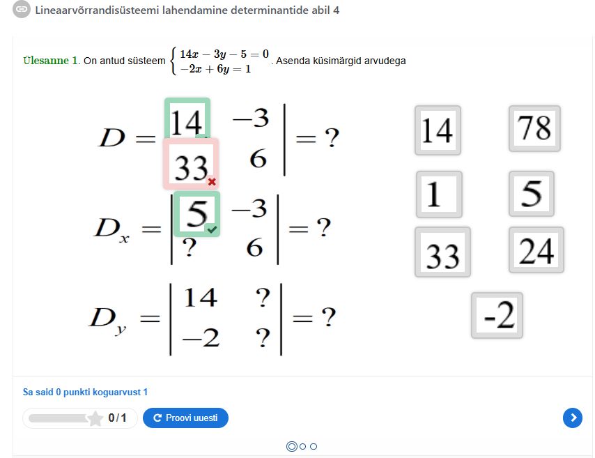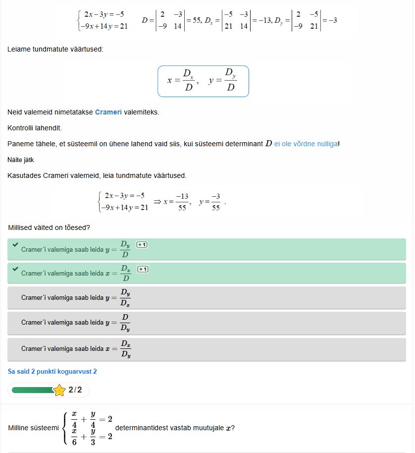 Interaktiivne õppematerjal koos ülesandega Crameri valemite kasutamise kohta