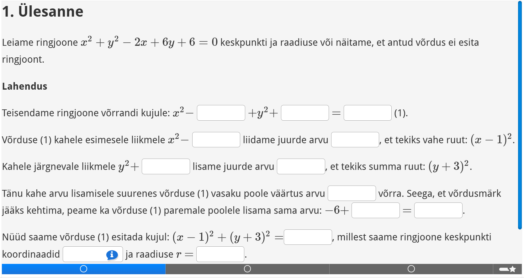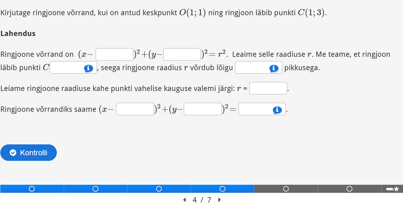 Lahenda interaktiivsed ülesanded teemal ringjoone võrrand.