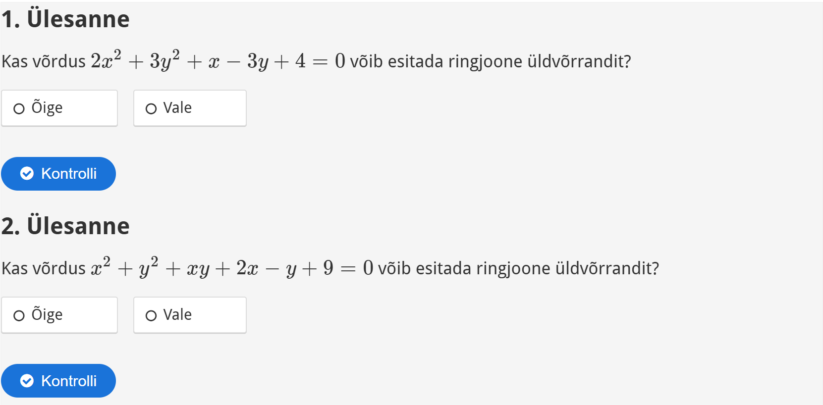 Selgita välja, kas võrdused esitavad ringjoone üldvõrrandit.