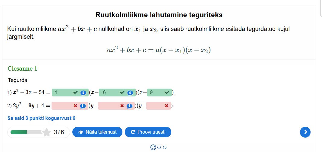 Ruutkolmliikme tegurdamine, interaktiivsed ülesanded teema kohta