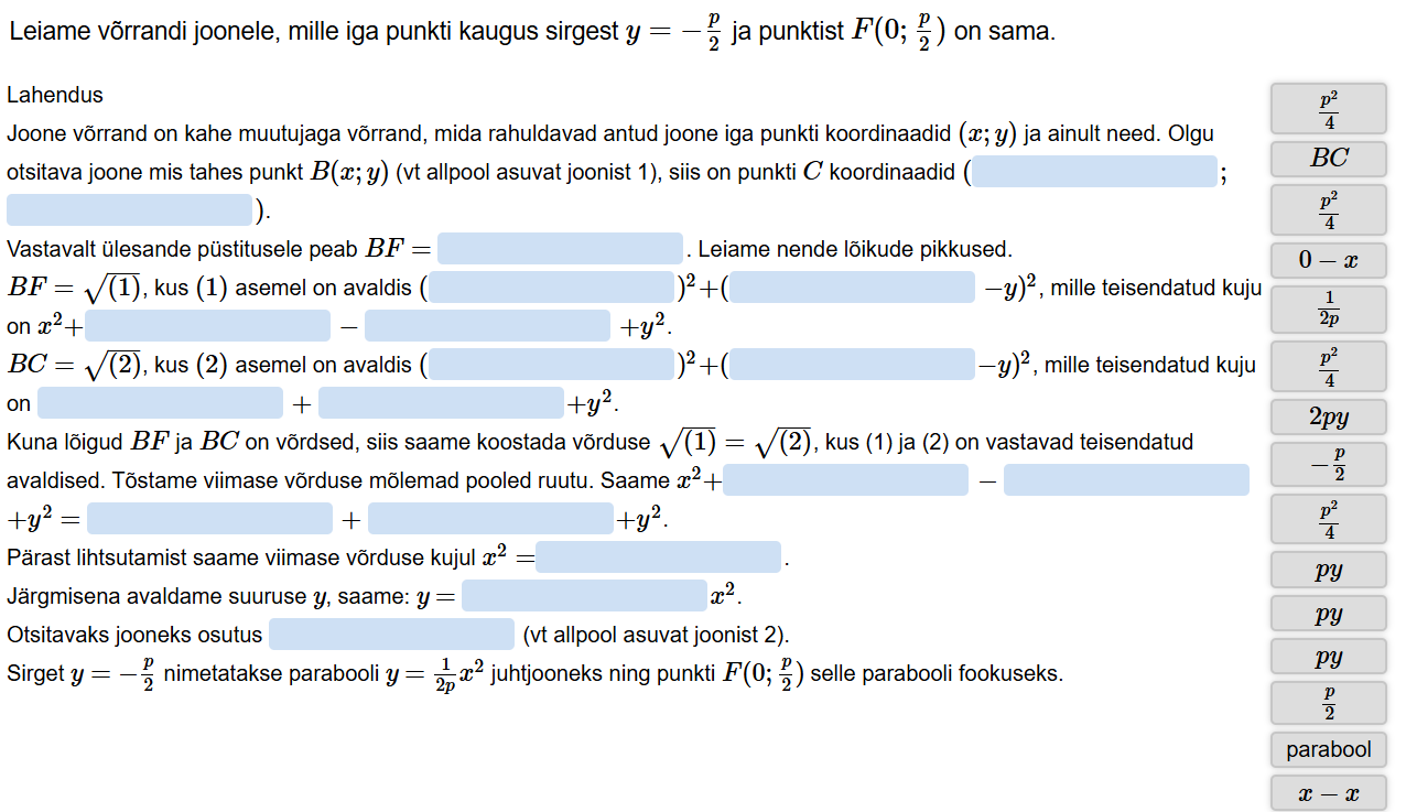 joone võrrand, parabool, parabooli võrrand