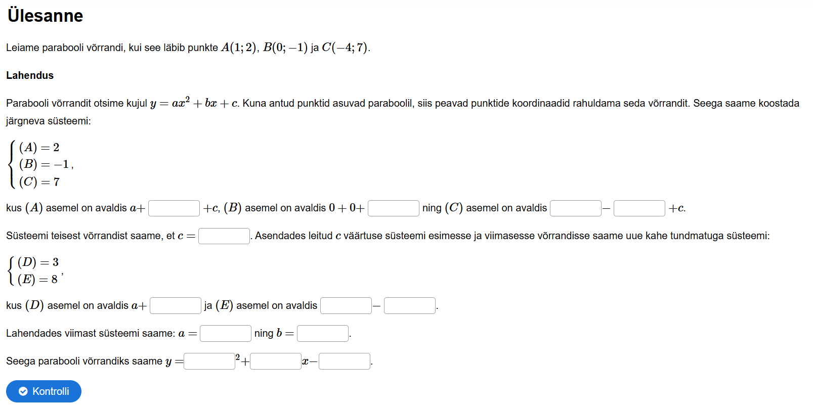 Parabooli võrrand kolme punkti järgi