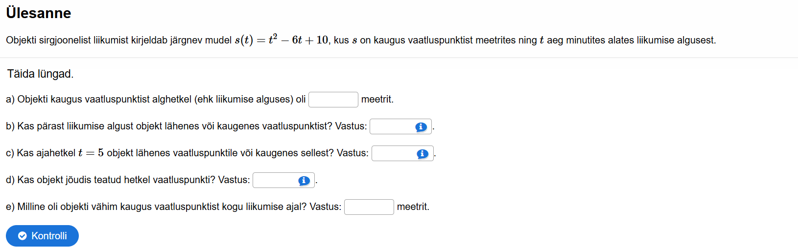 Lahenda reaaleluline ülesanne, mille puhul sirgjoonelist liikumist on kirjeldatud parabooli abil.