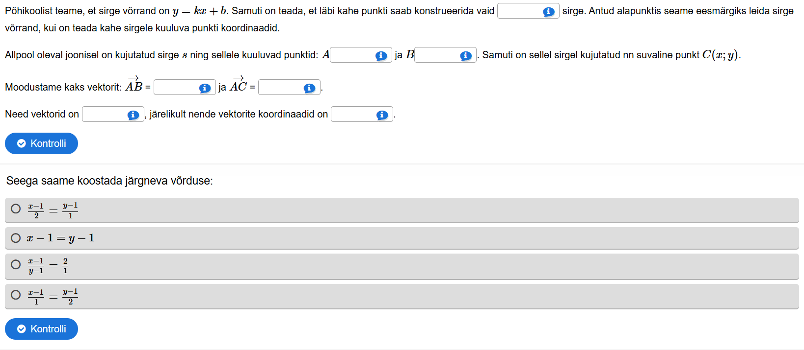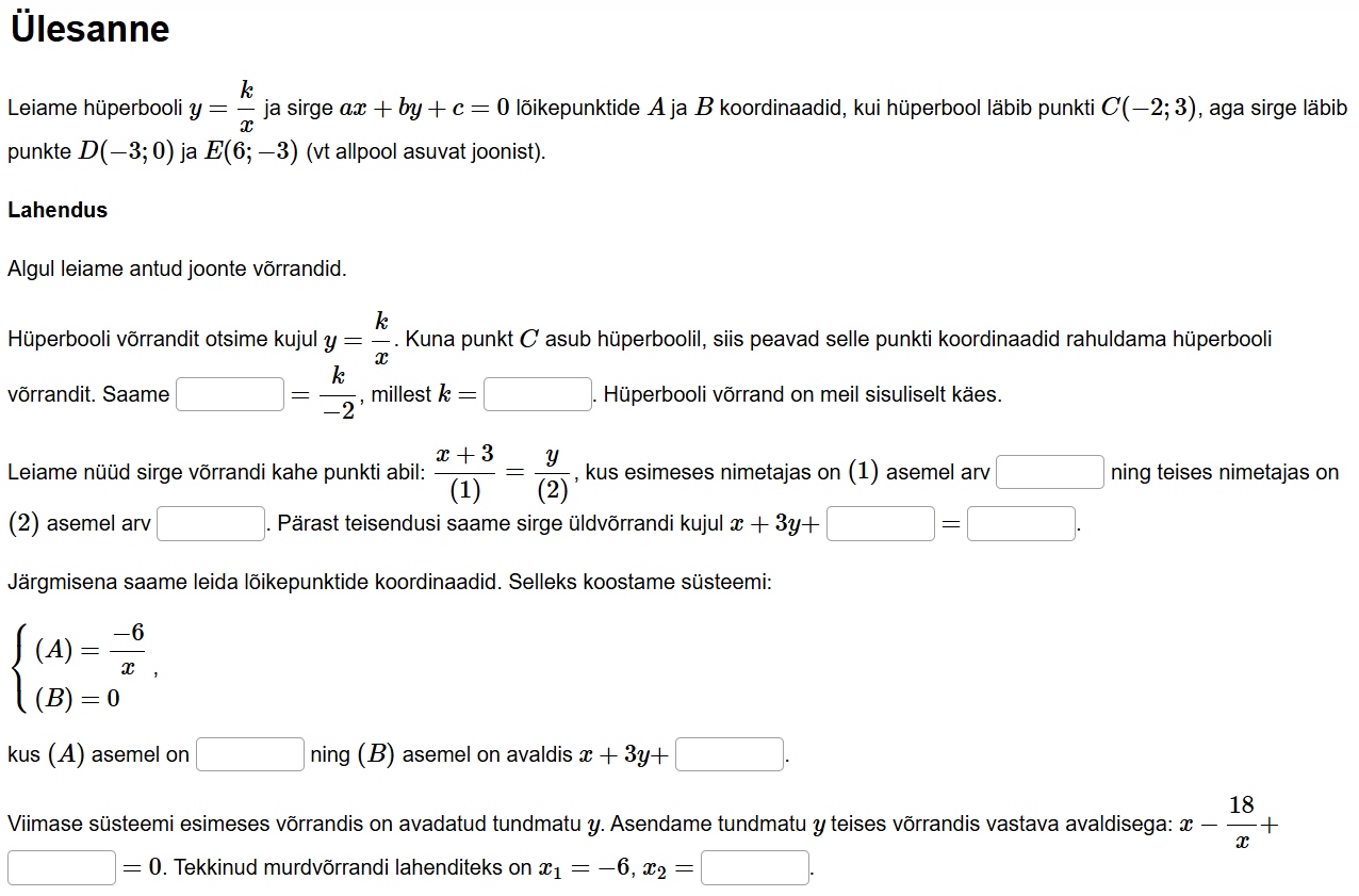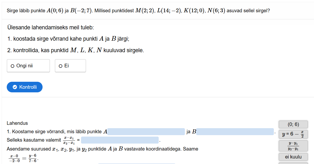 Lahenda erinevaid ülesaneid, mis on seotud sirge võrrandiga.