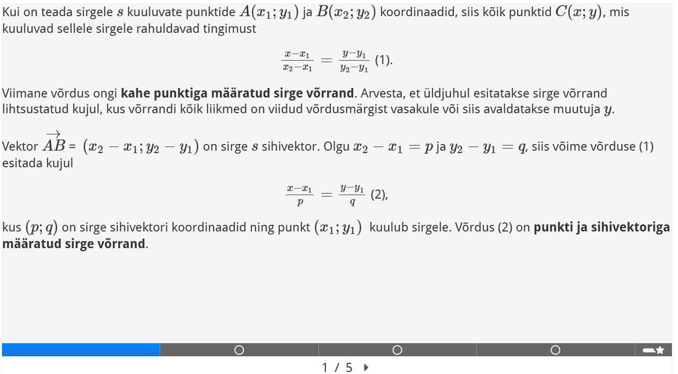 Uuri, kuidas leitakse sirge võrrand kahe punkti ning punkti ja sihivektori kaudu.e