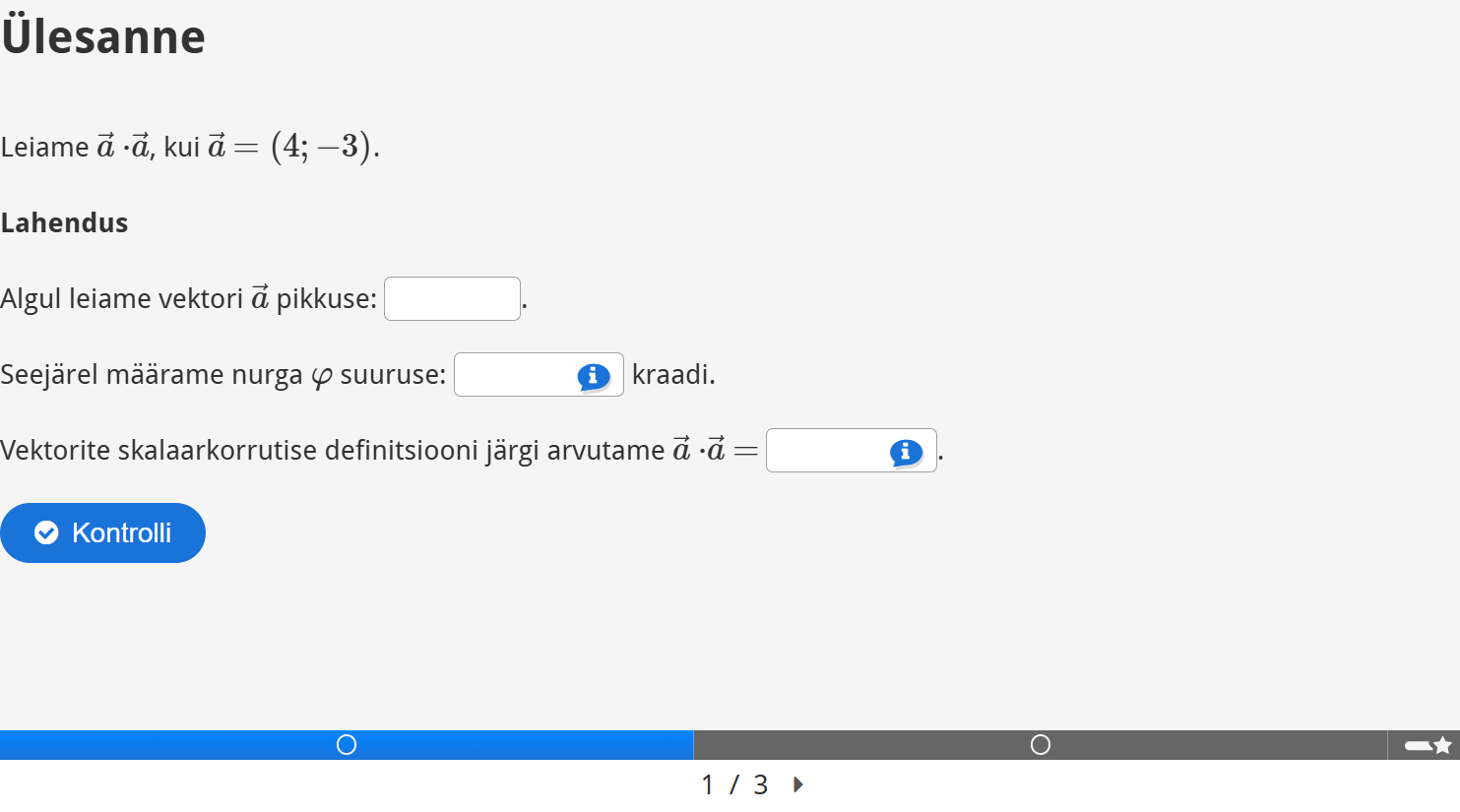 Lahenda vektorite skalaarkorrutise rakendusülesanne