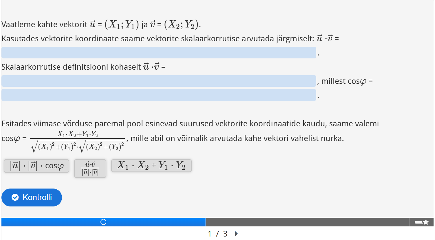 Tutvu vektorite skalaarkorrutise mõistega