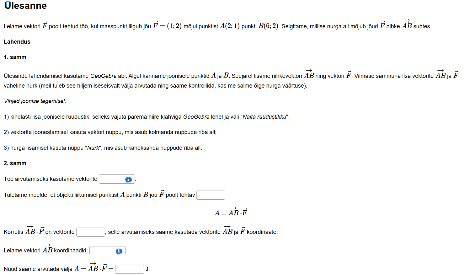 Lahenda ülesanne, mille puhul tuleb kasutada nurka kahe vektori vahel