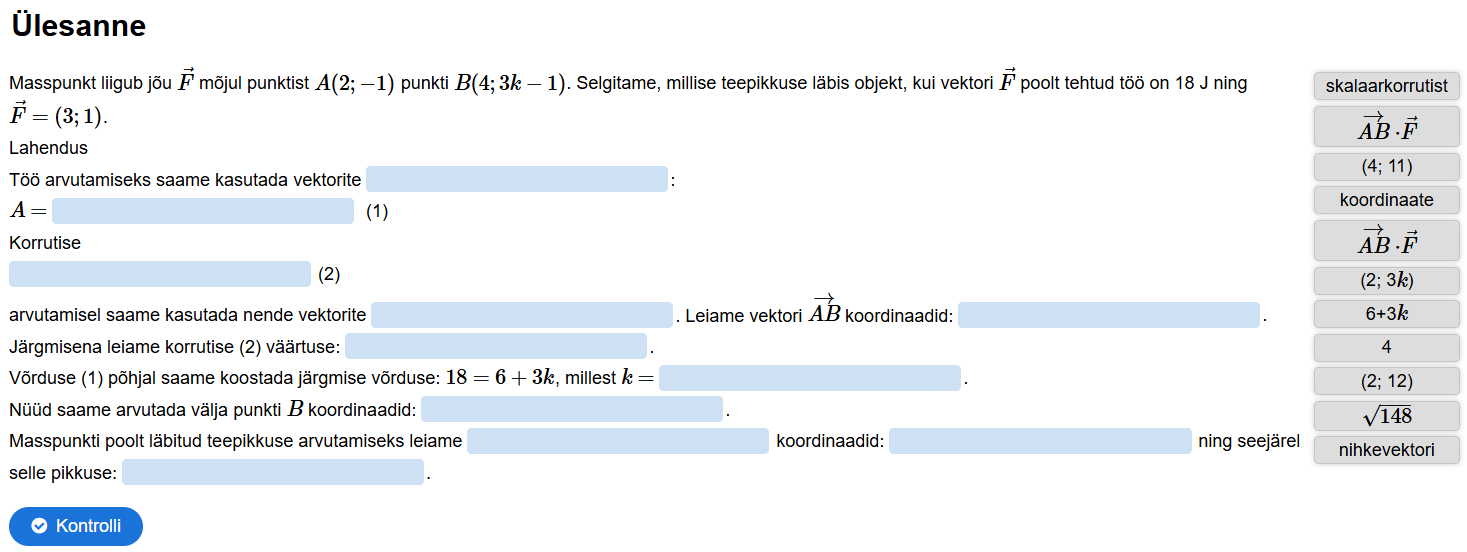 Lahenda vektorite skalaarkorrutise rakendusülesanne