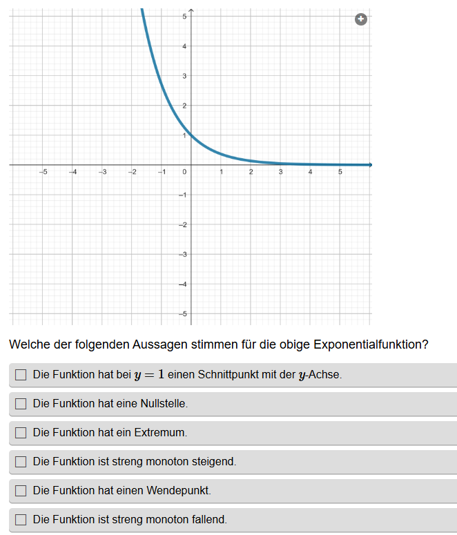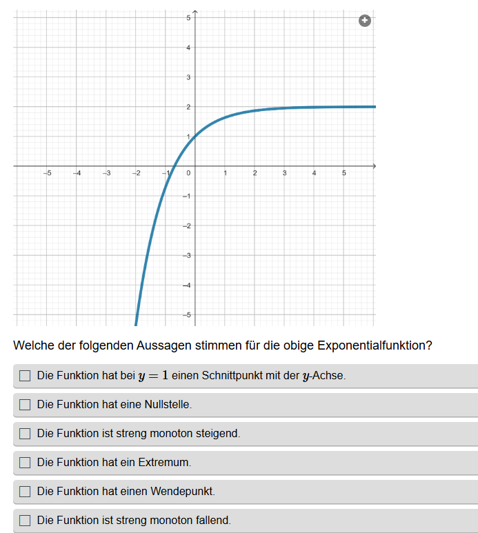 Aufgabenstellung: Zu einem Graphen einer Funktion müssen die richtigen Aussagen gefunden werden.