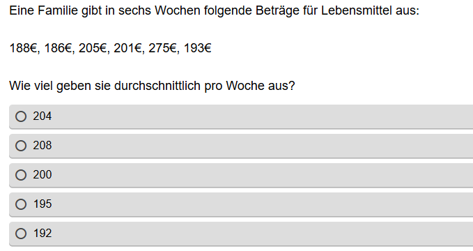 Aufgabenstellung: Zu einer Urliste soll der Wert für den arithmetischen Mittelwert bestimmt werden
