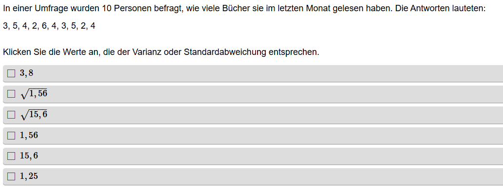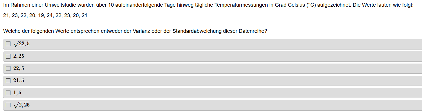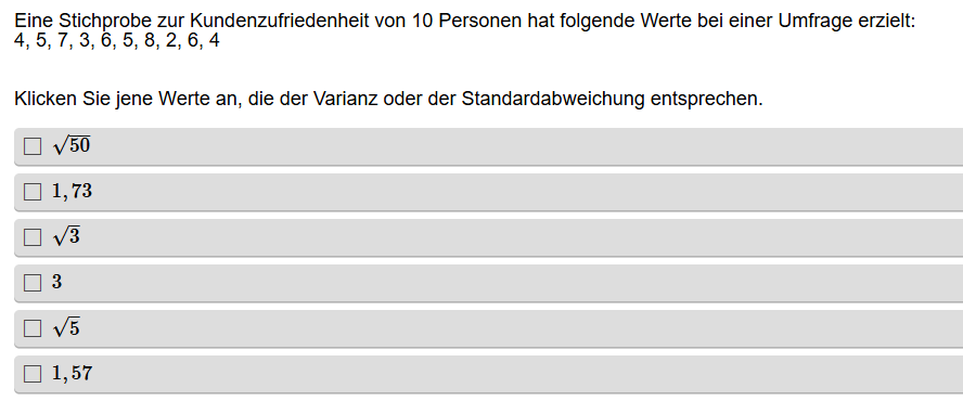 Aufgabenstellung: Zu einer Urliste sollen die Varianz und Standardabweichung bestimmt werden