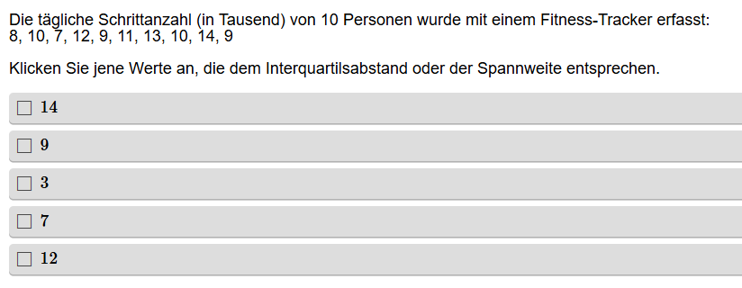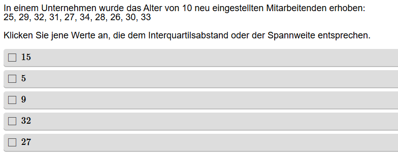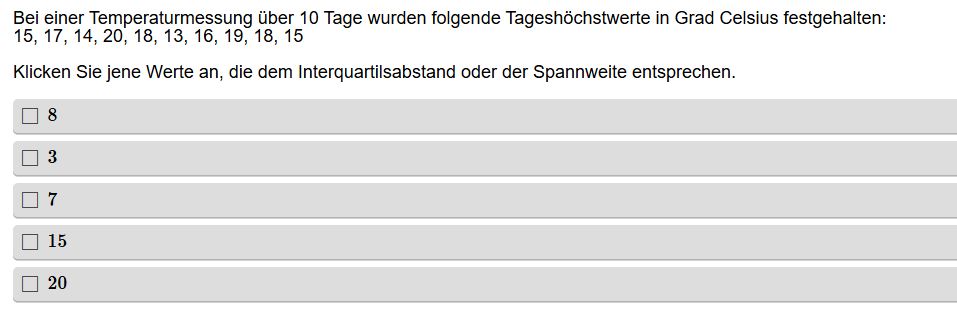Aufgabenstellung: Zu einer Urliste sollen der Interquartilsabstand und die Spannweite bestimmt werden