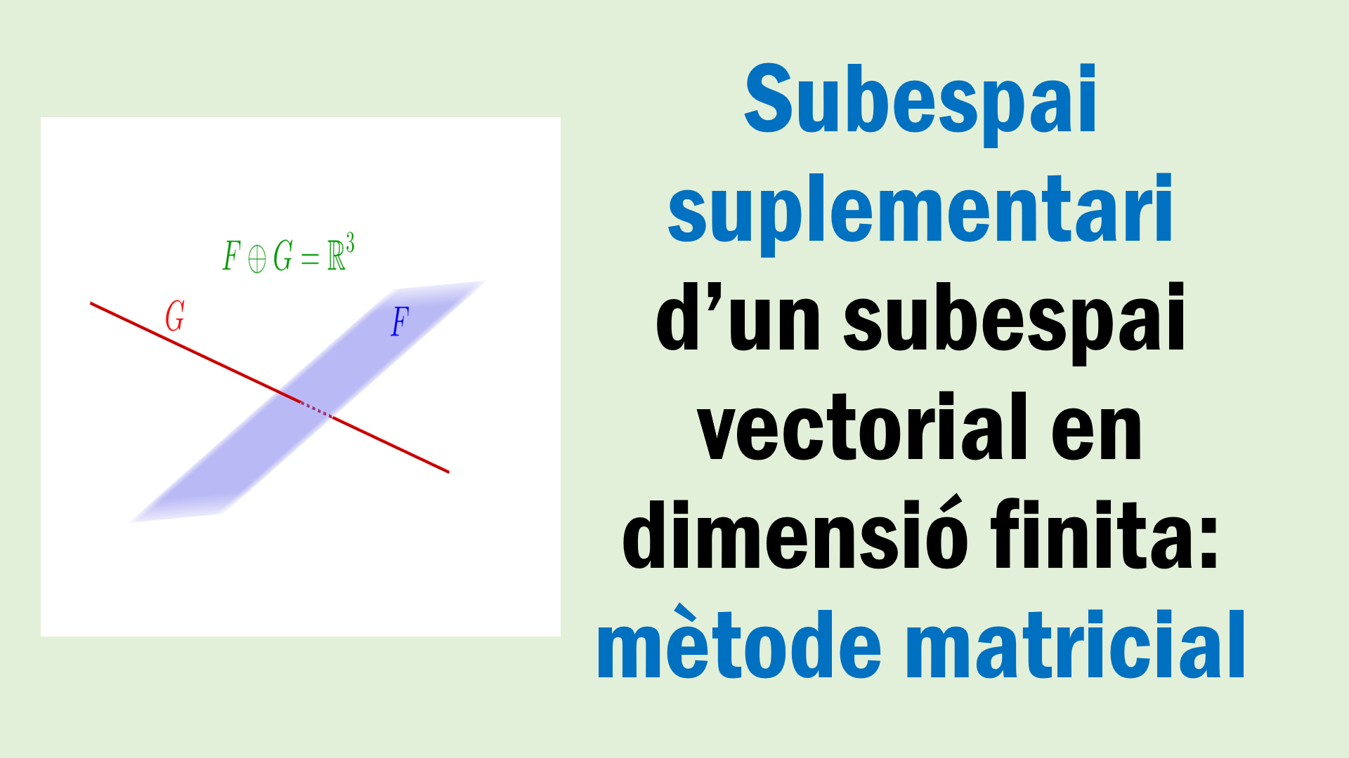 Mètode matricial que permet obtenir fàcilment un subespai suplementari d‘un subspai d‘un espai vectorial de dimensió finita; amb exemples (pptx editable).
