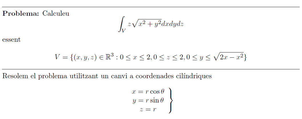 Resolució d’un problema d’integració múltiple amb coordenades cilíndriques.
