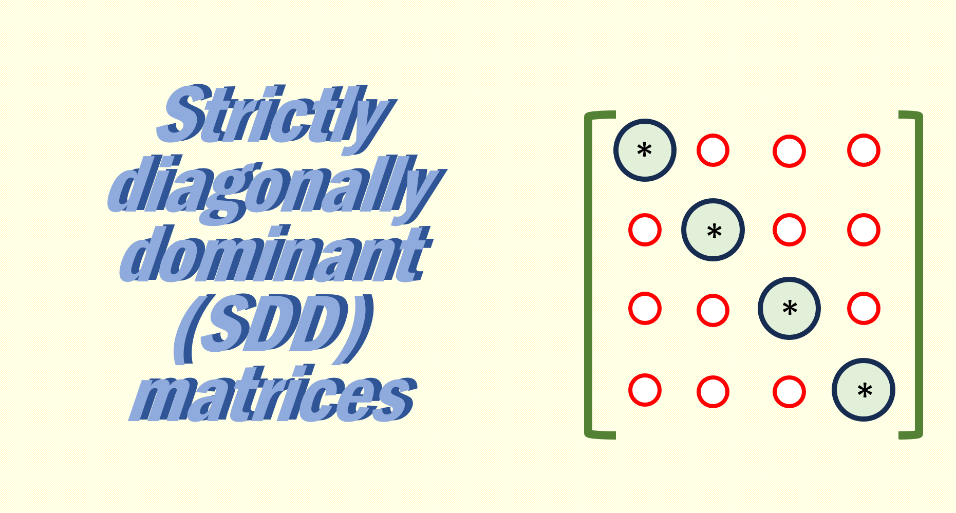 Definition and two important properties of strictly diagonally dominant matrices are presented; with examples and questions to be answered online (editable pptx).