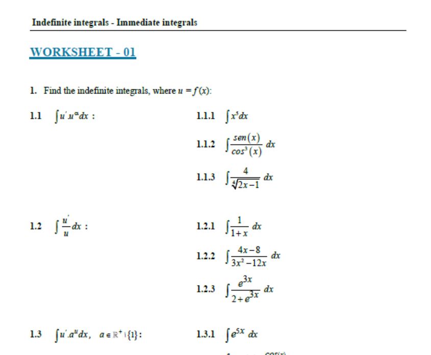 Practical exercises about antiderivatives of one real variable functions – immediate integrals