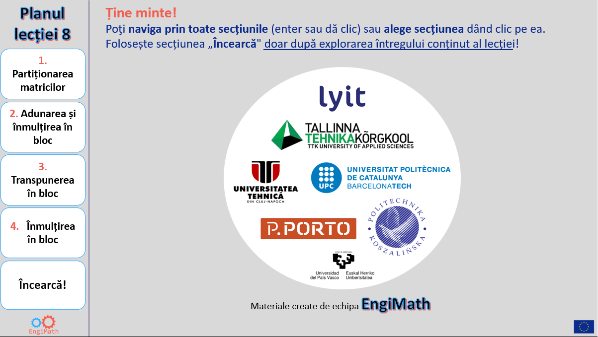 Această lecție 8 va explica conceptul de matrici partiționate în blocuri.