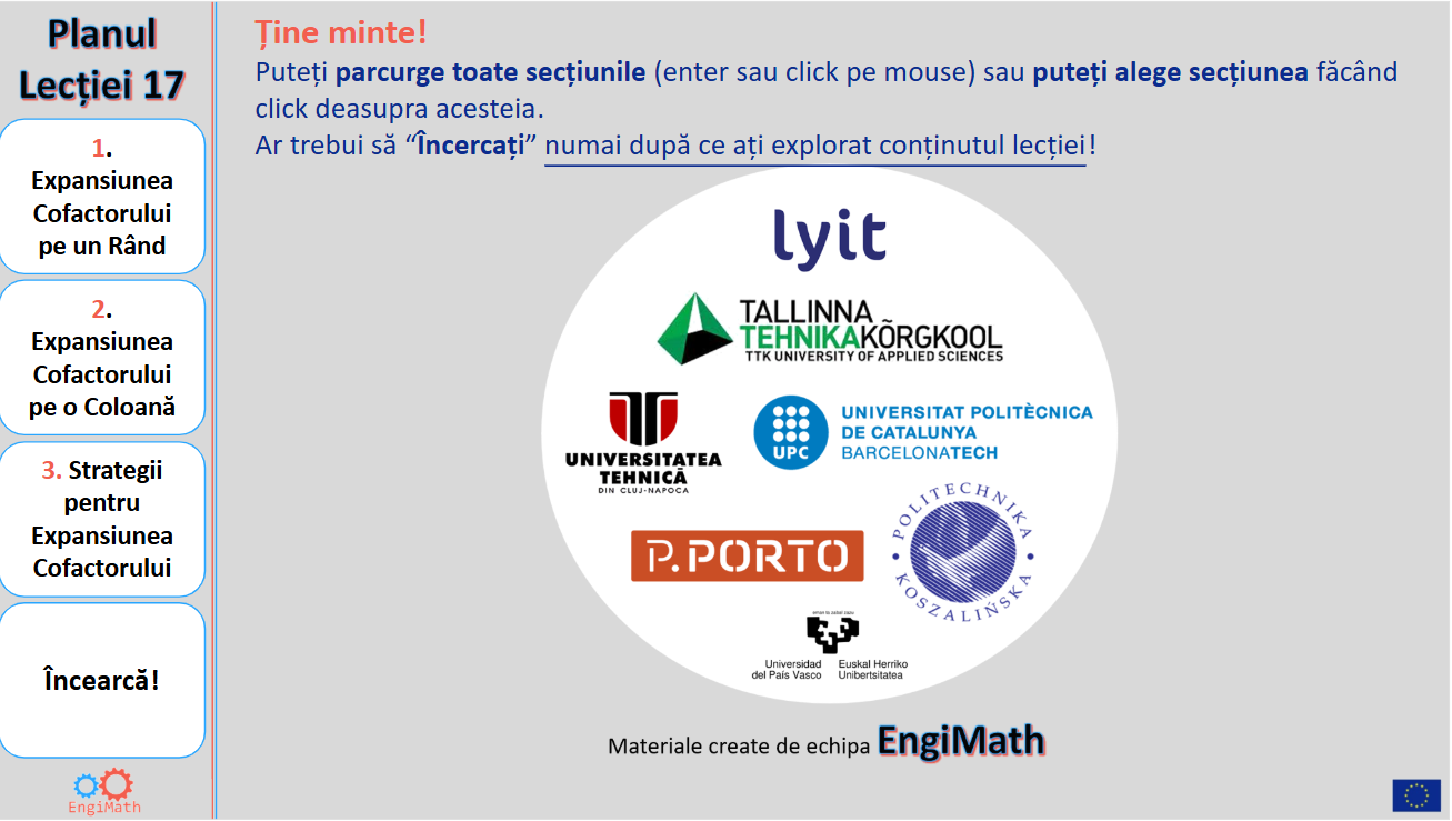 Această lecție 17 va explica cum se calculează determinantul unei matrice utilizând expansiunea cofactorului, care este o metodă de calcul a determinanților mai mari în termeni de cei mai mici.