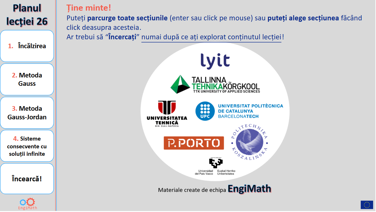 Această lecție 26 va explica Metode eficiente pentru simplificarea la maximum a unui sistem de ecuații liniare folosind operații de rând elementare: Metoda Gauss Elimination și Gauss-Jordan Elimination Method.