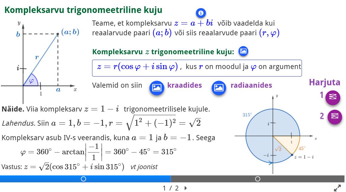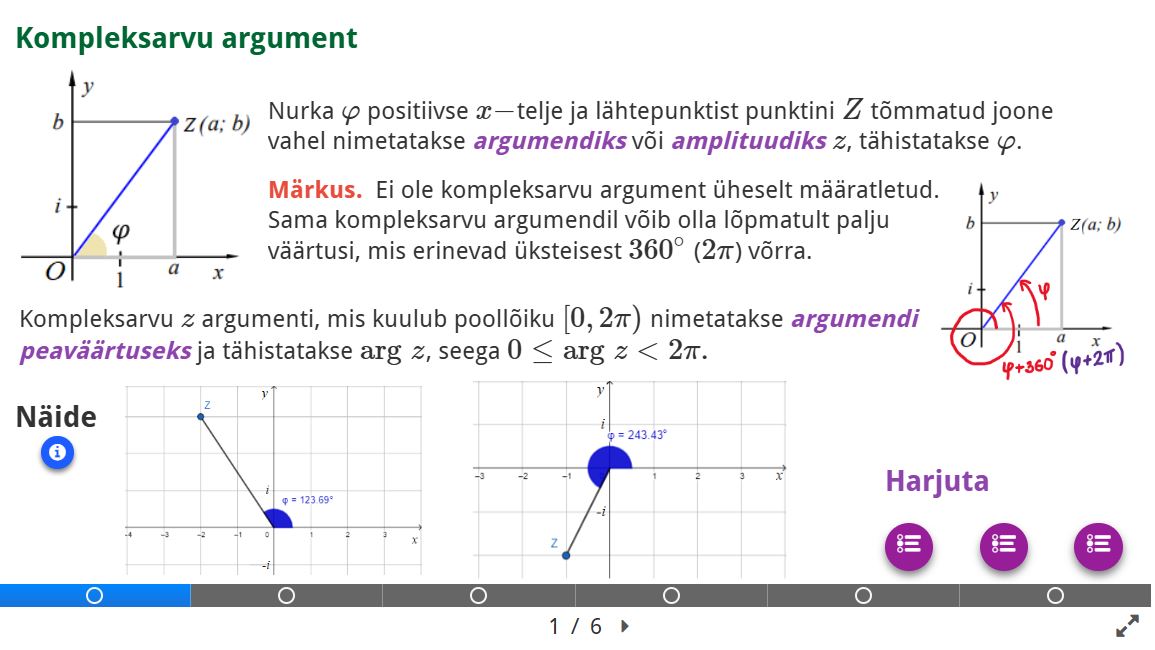 Õpiobjekt tutvustab kompleksarvu argumendi mõistet. Kuidas määrata argumenti, kui kompleksarv asub esimeses, teises ja kolmandas või neljandas kvadrandis.
