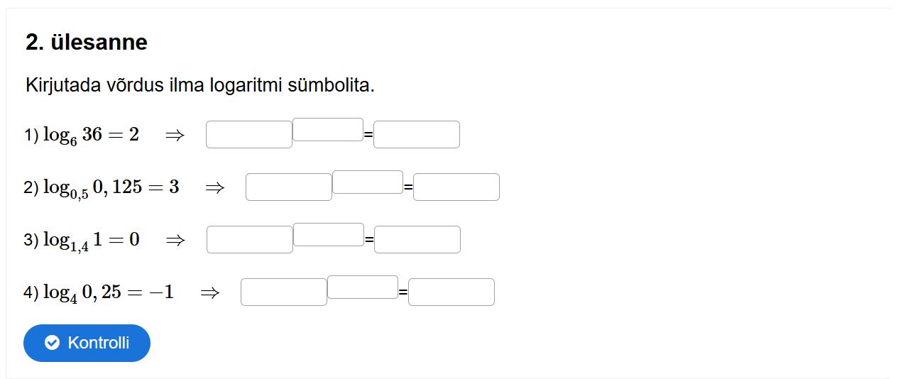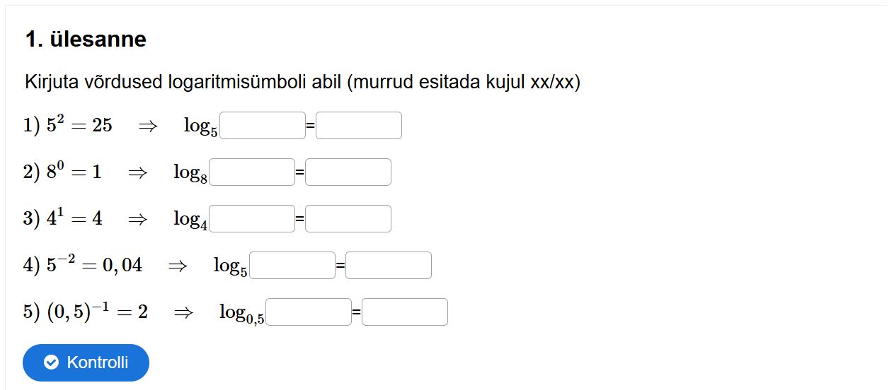 Ülesanne: Kirjuta võrdused logaritmisümboli abil